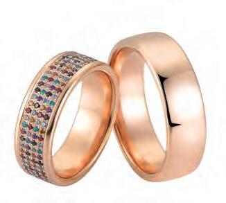 Der Trend Mix & Match erlaubt Paaren, Individualität zu zeigen und dennoch harmonische Ringpaare zu kreieren. Unterschiede in Breite, Oberfläche, Steinbesatz oder Materialwahl –wie Gelbgold mit Diamanten für die Frau und Tantal für den Mann – machen jeden Ring einzigartig. So entstehen kreative Ringpaare, die die Einzigartigkeit jedes Partners feiern.
