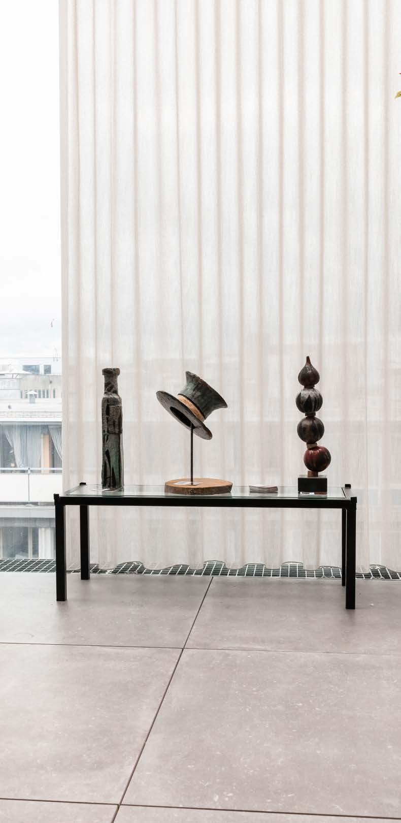 Deze editie van (B)RUIS weerspiegelt luxe, maar bij ÇA-VA! krijgt dat woord een minder voor de hand liggende betekenis. Hier geen glitter of hoogglans, maar stilte, vakmanschap en eerlijkheid. “Voor ons is luxe aandacht”, zegt Lonneke. “De tijd nemen om iets goed te doen, met echte materialen. Tegenwoordig is zó veel nep – alles moet snel, goedkoop, online. Wij doen juist het tegenovergestelde.” Hun verfkleuren – zacht, mat, aards – ademen diezelfde rust. “We houden van contrast”, vult Gilbert aan. “Oud hout naast strak beton, ruw naast glad. Alles draait om balans. Als alles nieuw is, wordt het saai. Als alles oud is, ook. De spanning ertussen maakt het interessant.”