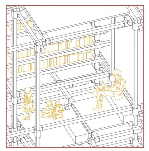 El programa más dinámico esta contenido en el volumen horizontal transparente para poder visualizar las actividades del interior desde afuera.