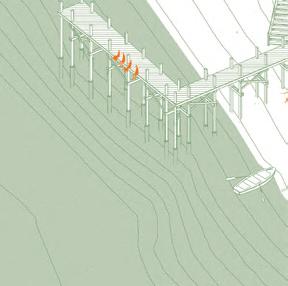 Con un alcance de 5.7km a lo largo del río, conectando Santo Tomás de Nanay con los centros poblados de San Fernando, Padre Cocha y Manacamiri, el proyecto se desarrolla como el conjunto de tres estructuras diseñadas específicamente para diferentes momentos a partir del variante clima de la región: lo emplazado, lo palafítico y lo flotante. Por ello, el diseño contempla la movilidad y flexibilidad del espacio, teniendo en cuenta las condiciones del río, la materialidad y el confort térmico.