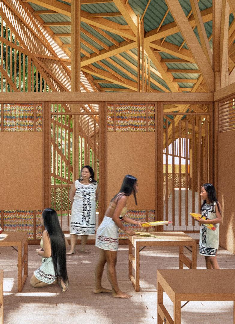 El proyecto del Centro Comunitario de apoyo educativo y módulos flotantes a orillas del río Nanay surge como respuesta a la necesidad de brindar a las comunidades aledañas, un espacio multifuncional que promueva encuentros sociales, culturales y educativos, inspirado en la arquitectura vernacular y tradicional de la región: la Maloca. Cuenta con el objetivo de fomentar el desarrollo cultural y la cultura Kukama Kukamiria y la iniciativa de abordar los desafíos causados por las inundaciones periódicas y el desplazamiento de la comunidad originaria debido a la urbanización.