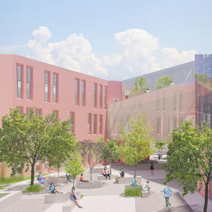 Se plantea el uso del concreto expuesto rojo para darle un color carasterístico al edificio como respuesta al contexto.