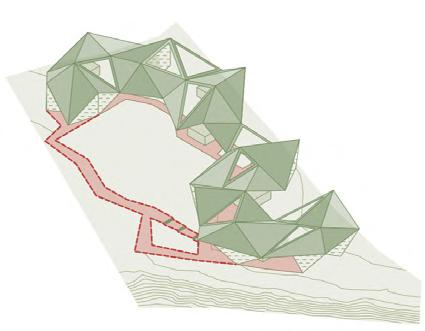 Emplazar los volúmenes sobre el lado derecho de la cancha y la zona más alta del terreno