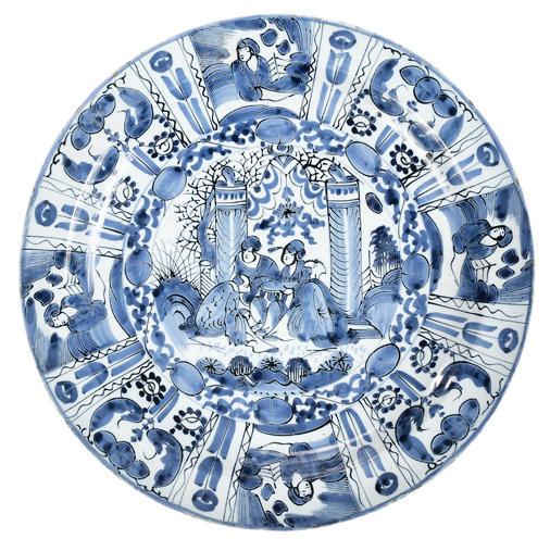 Pair of English Delft Polychrome Tulip Chargers, probably Bristol, circa 1700