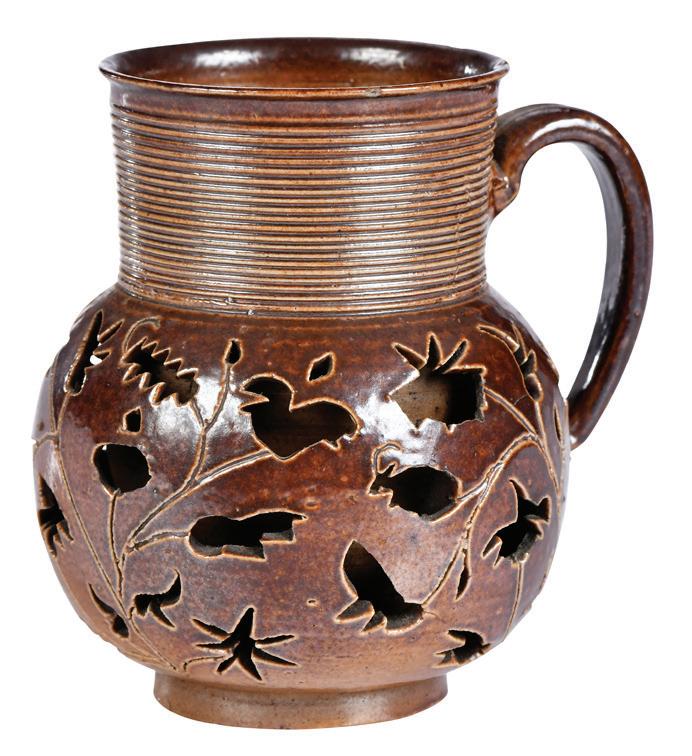 Widely distributed throughout the European world from the land of its creation (also called Westerwald) on the banks of the Rhine, Westerwald stoneware is an archetypal artform of the 17th and 18th centuries, during which it truly flourished. The majority of our offerings are fine examples of ever-pervasive globular face or armorial decorated jugs, the King William III face jug in this sale being of particular note. Also of interest is the extremely rare English Delft two-handled tyg if the mid 17th century, made in imitation of German stoneware from the Rhineland.