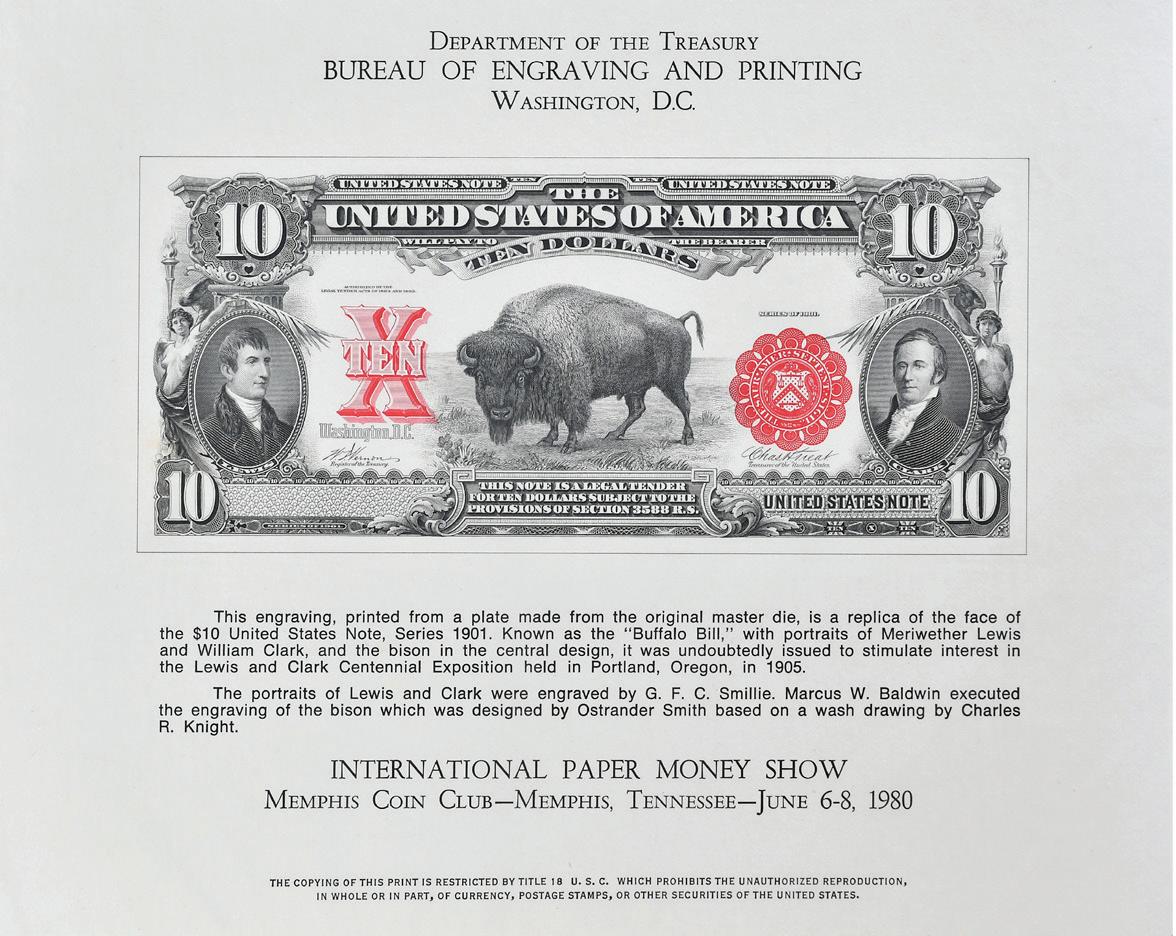 Estimate: $5,000 - $7,000 ”greenback”, issued under Act of July 17, 1861, series 10, pp B, with bust of Alexander Hamilton at right and statue of Freedom at left, printed by American Bank Note Company, handsomely framed, 11-1/4 x 14 in. overall