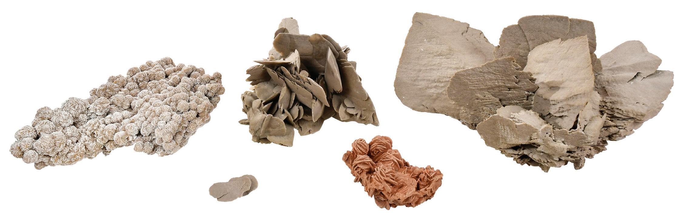 three specimens including one large rosette from the Daye Mine, Hubei Province, largest 2-1/2 x 2-3/4 in., minor chips, abrasions, and some losses to specimens