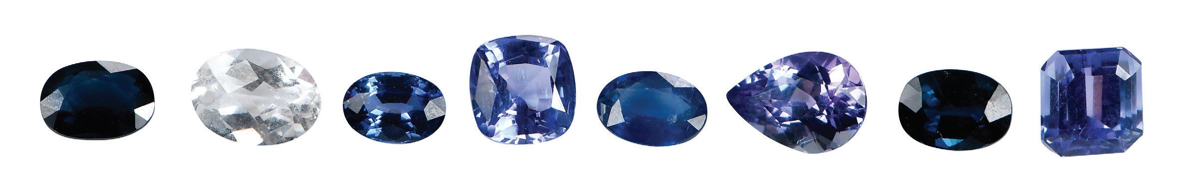 thirteen dark purple, stepped, free-form fluorite, some accompanied with sphalerite matrix, some originating from the Elmwood Mine, TN, some with quartz or druzy, largest 2-1/4 x 5-1/2 in., abrasions, losses, some cleaved corners and residue, scratches, and fissures throughout Provenance: The Life Collection of Sara Graham Peacock