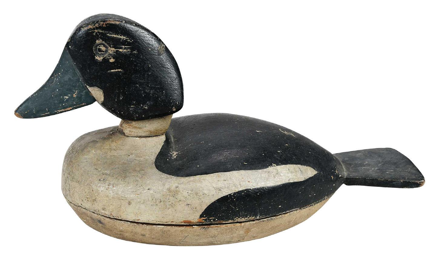 Literature: Earnest, Adele, The Art of the Decoy: American Bird Carvings, New York, 1965, pg. 64, related example illustrated; Fleckenstein, Henry A., Jr., New Jersey Decoys, Exton, Pennsylvania, 1983, pgs. 32 and 142, related examples illustrated; Waingrow, Jeff, American Wildfowl Decoys: A History and Collector’s Guide, New York, 1985, pg. 44, related example illustrated; Doherty, James R., Classic New Jersey Decoys, Louisville, Kentucky, 2011, pg. 166, related example illustrated