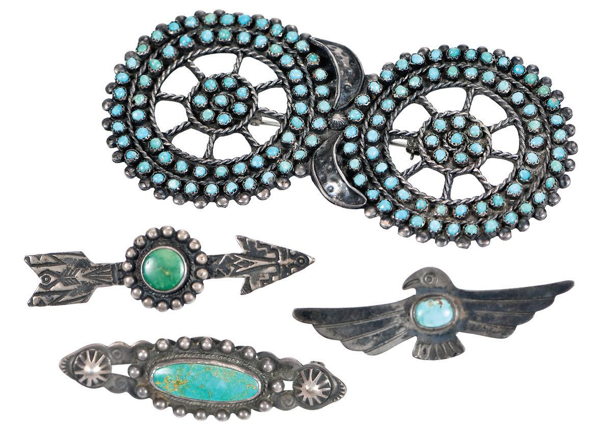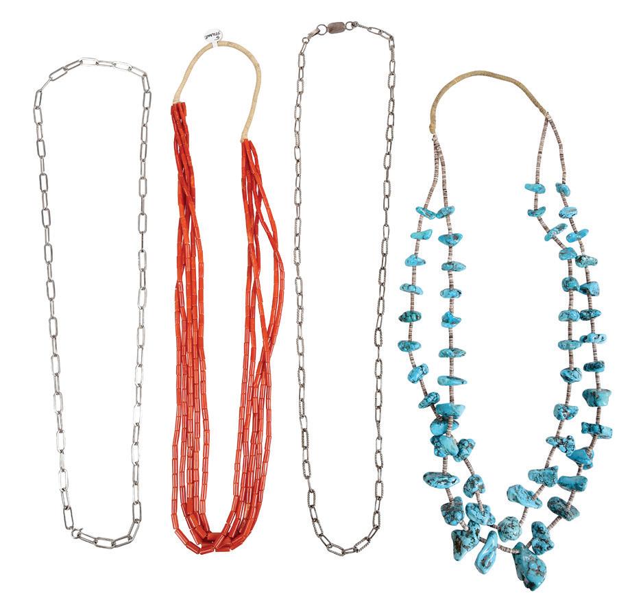 four pieces total, all specimens with associated mineral matrix, largest 2-3/4 x 13 in., abrasions, losses, residue to most specimens