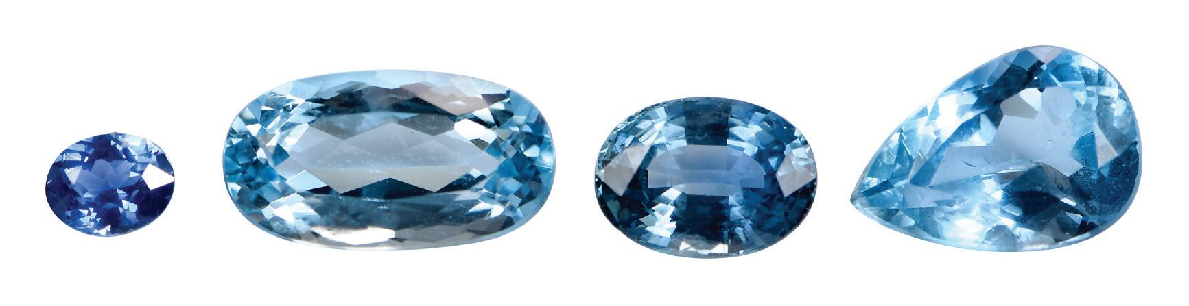 seven specimens from the beryl family, some in matrix with associated minerals, some free forms, largest in feldspar matrix measuring 1-1/2 x 4 in., losses, abrasions, residue, and fissures to specimens