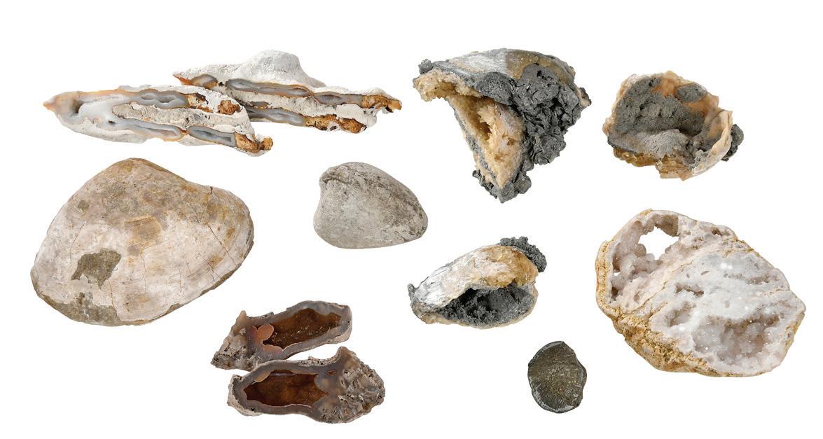10 volumes total, including: Gemstones of North America by John Sinkankas, Princeton, New Jersey: D. Van Nostrand Company, Inc., 1962; Minerals: Nature’s Fabulous Jewels by Arthur Court and Ian Campbell, New York: Harry N. Abrams, n.d.; Down the Crabtree by Robert J. Schabilion, Gem & Lapidary Wholesalers, Inc., 2009, signed and inscribed by author; and seven other titles (see additional photos of spines for titles), light wear to extremities, some scuffs and minor losses to covers, bumped corners