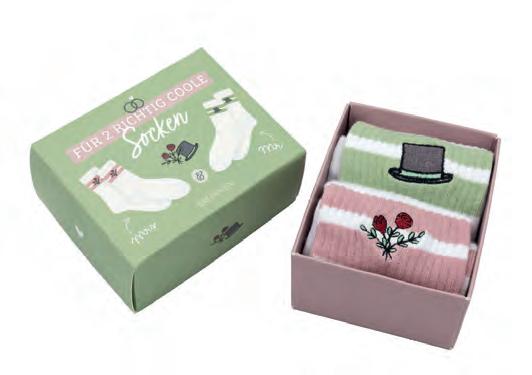 2 Paar Socken mit Stickerei in Geschenkbox, Größe 1: 35-41, Größe 2: 40-45, Maße Box: 11,5 x 9 x 5,2 cm, Material: 85% Bio-Baumwolle, 12% Polyamid,