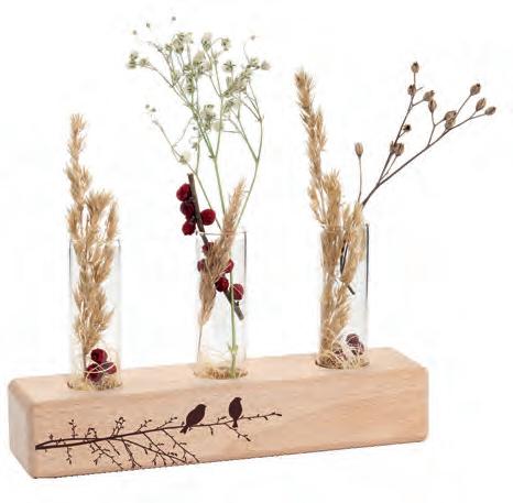 Blumen- und Gräservase mit Glaseinsatz, Holzständer (10,5 x 10,8 x 3,4 cm)
