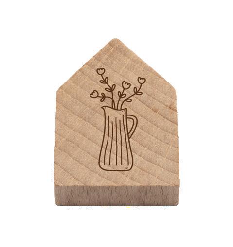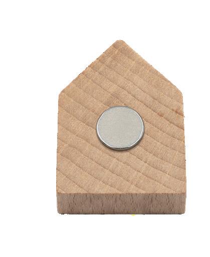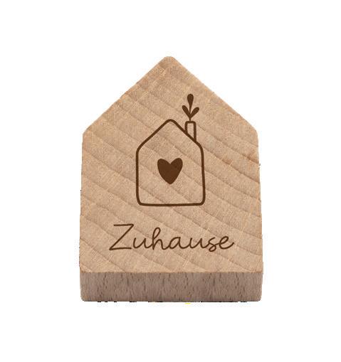 Holzhaus (2,5 x 3,8 x 1 cm) aus Buchenholz mit Magnet, hergestellt in Deutschland, mit hochwertiger Gravur, einzeln verpackt in Header-Beutel.