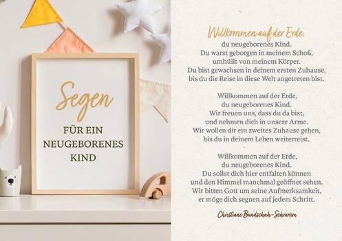 Ein liebevoll gestalteter kleiner Gruß mit guten Wünschen und Gebeten für ein Neugeborenes und seine Eltern, mit dem man das kleine Wunder herzlich willkommen heißen kann auf dieser Welt.