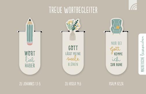 Je 3 Magnetlesezeichen mit Ausstanzung im Set, Größe jeweils ca. 8,5 x 2 cm (offen).