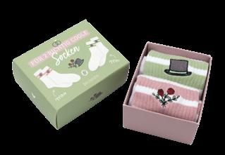 2 Paar Socken mit Stickerei in Geschenkbox, Größe 1: 35-41, Größe 2: 40-45, Maße Box: 11,5 x 9 x 5,2 cm, Material: 85% BioBaumwolle, 12% Polyamid, 3% Elasthan, waschbar bei 30 °C