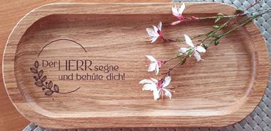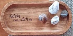 Ob als Untersetzer für Tassen, Kerzen oder als Servierhilfe – das hochwertige Eichenholz überzeugt durch seine Robustheit und sein schönes, abgerundetes Design. Regional in Deutschland gefertigt. Eiche geölt, mit Gravur, 25 x 12 x 1,5 cm. € 21,90 € (A) 22,50