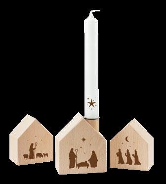 Die weihnachtlich gravierten Holzhäuser bilden gemeinsam eine wunderschöne Krippenszene. Das große Haus mit Krippenmotiv ist einzeln inkl. Kerzeneinsatz aus Metall oder gemeinsam mit den kleineren Häusern im Set erhältlich. Ein außergewöhnliches Geschenk zur Adventszeit.