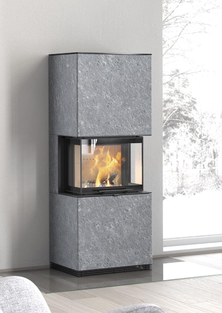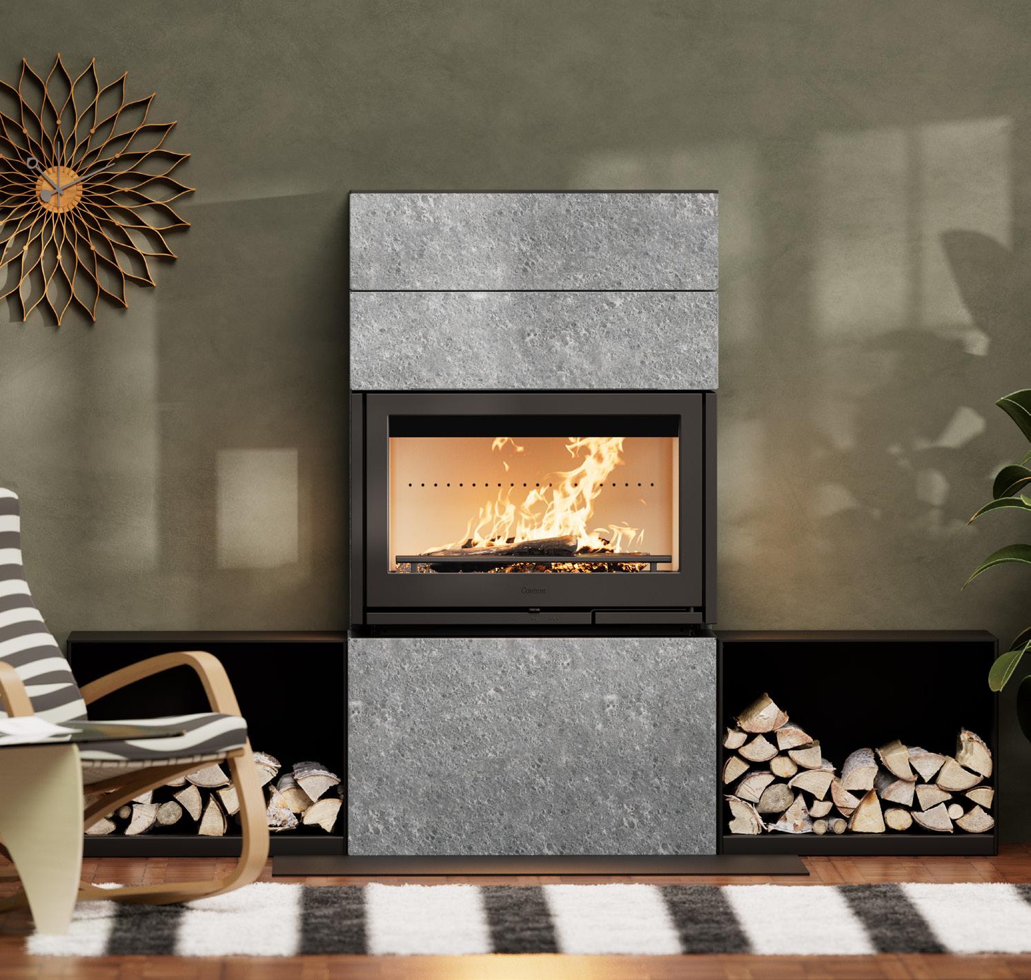 „Die Verkleidung aus Artstone vermittelt eine sanfte Haptik und Optik. Genau das hat uns gefallen. Stein, Glas und Feuer vereinen sich in attraktiver Symbiose. Klassische Materialien in moderner Ausführung.”