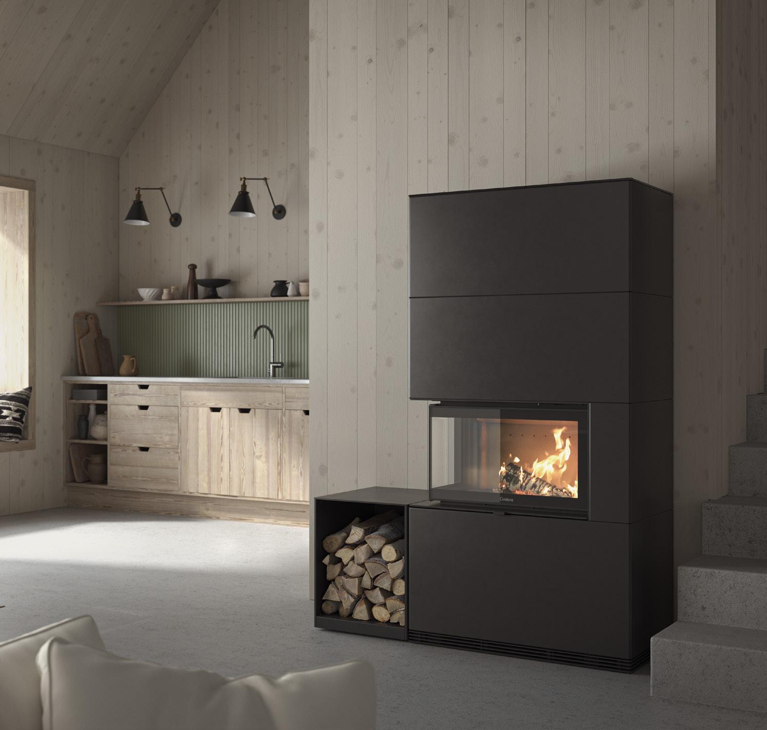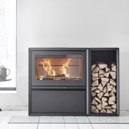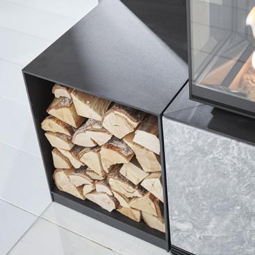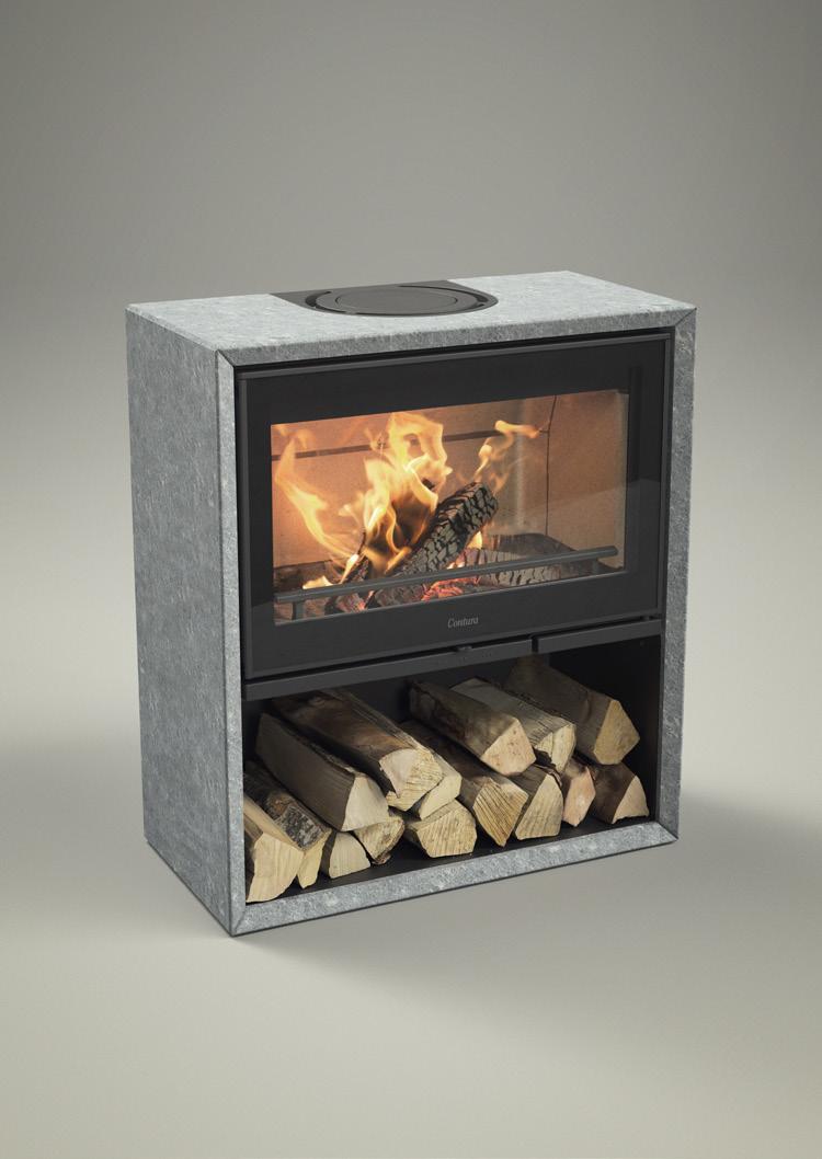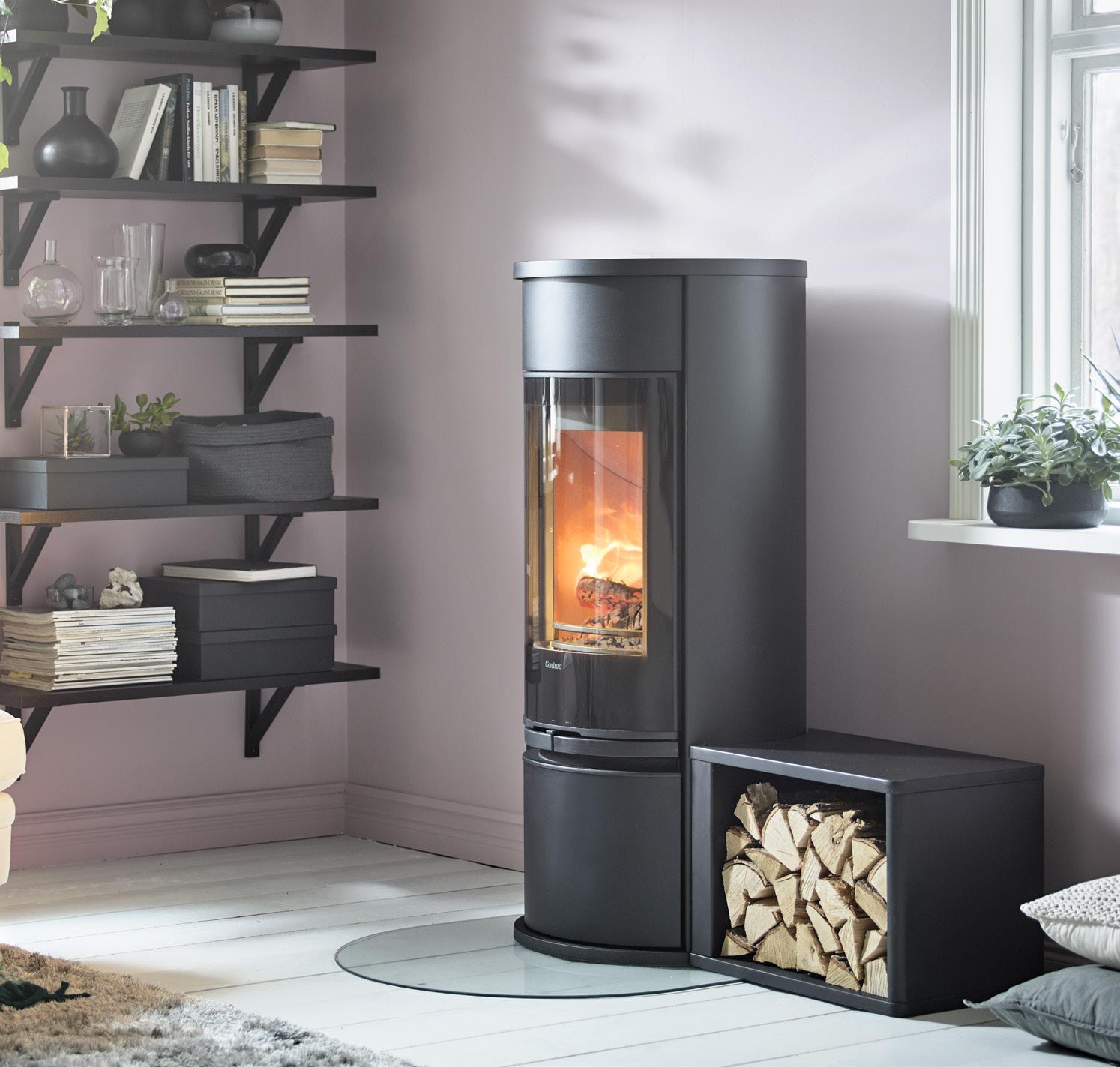Contura 210 lässt sich im Prinzip überall platzieren. Contura 210 kann auf einem Brennholzfach montiert werden, das als Option mit oder ohne Holzfachtür erhältlich ist und eine praktische Aufbewahrungsmöglichkeit für Ihr Brennholz bietet – direkt dort, wo es gebraucht wird. Zusammen mit dem Brennholzfach kann Contura auf den meisten Böden aufgestellt werden.