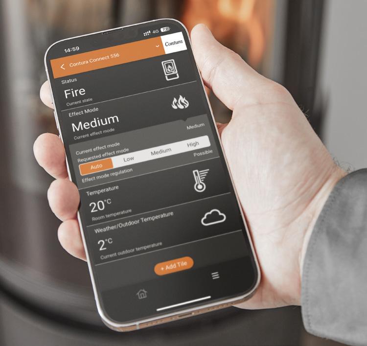 Mithilfe eines Temperaturfühlers für Kamin- und Raumtemperatur und einer Lambdasonde, die die Sauerstoffmenge bei der Verbrennung misst, kann der Contura Connect 556 den Luftstrom steuern und so die Wärme im Kaminofen regulieren.