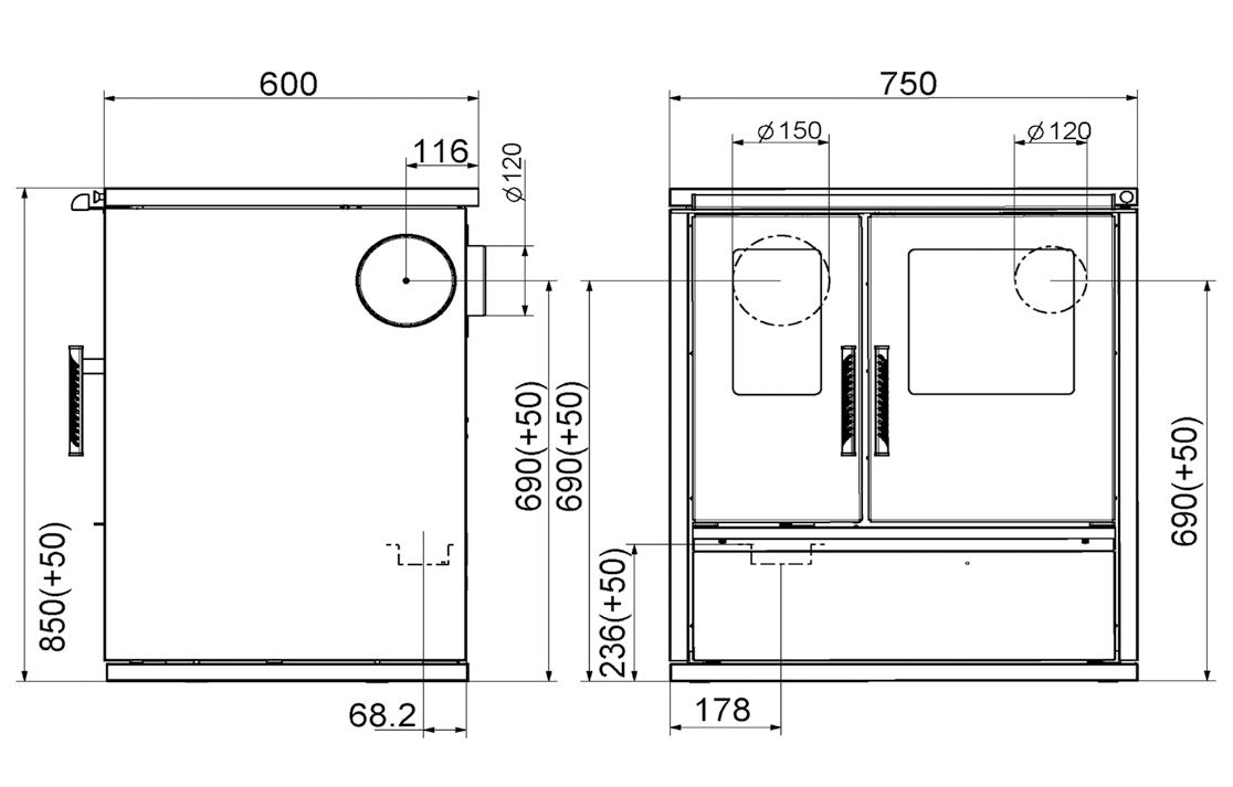 Heiztüröffnung (Breite, Höhe) mm 180, 200 180, 200