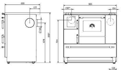 Abgasmassenstrom NWL g/s 10,4 Abgasstutzen-Temperatur °C 210 Sicherheitsabstand (hinten, Seite / Feuerraum, Seite / Backofen, vorne) mm 200, 3, 3, 800