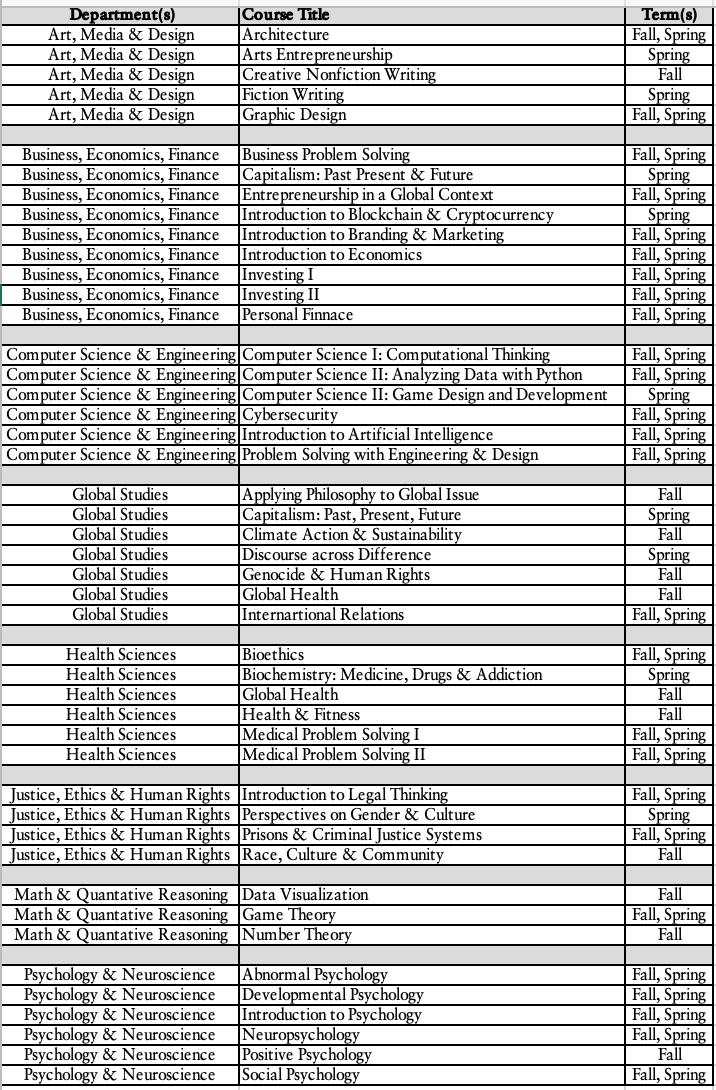 The courses listed below are developed from the traditional disciplines of Art, English, Classics, History, World Languages, Math, and Science. Although these courses do not satisfy any particular department’s graduation requirements, they do count as full academic classes and may well be cross-listed, within a relevant department, on the following pages.