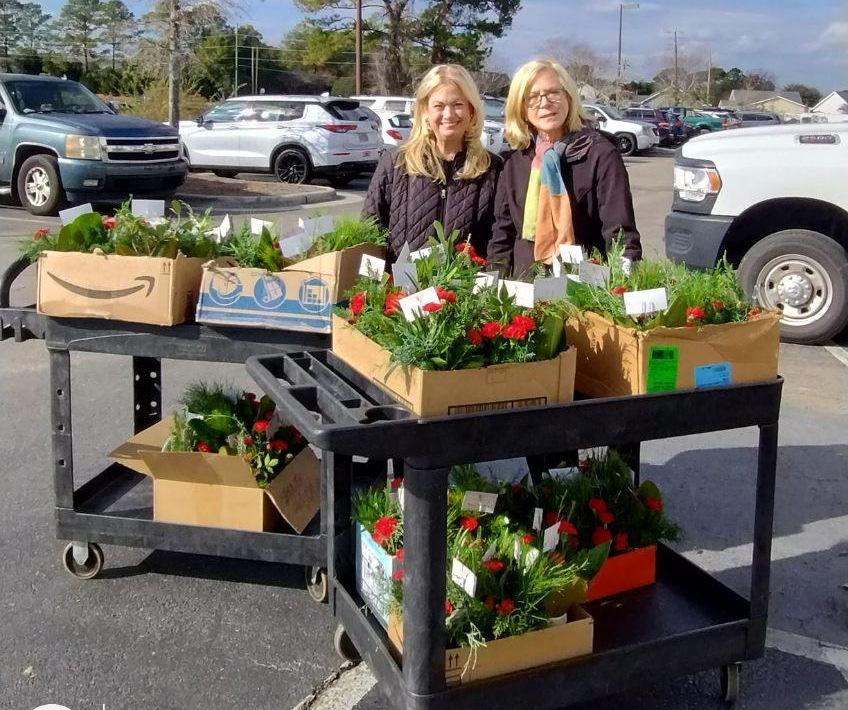 The SPT Garden Club provided Christmas gree ngs to our homebound via flower arrangements.