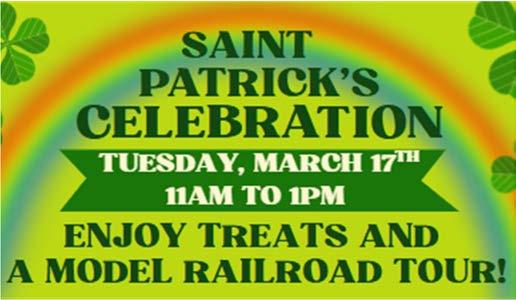 6 Friday:LunchattheCenter &CraftMakingEventwith Mia 17 Tuesday:St.Patricks’Day Party