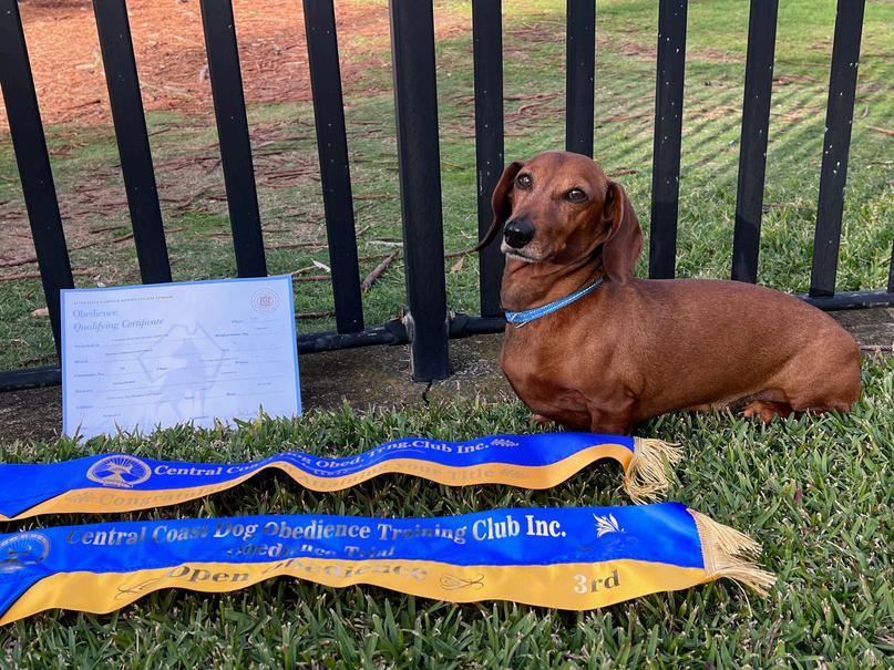 Do compete in as many trials as you can Every time I went in ring, I learned something – about me and about my dog The trialling community is hugely supportive Henri and I have m from all over NSW and I have spent many weekends away in Bermagui, Coffs Harbour, Canberra and Newcastle having qu time with my dog The third pass will happen! We did train consistently even when I didn’t feel like it. Henri loves trainin showing me what he can do and of course getting many rewa I always walked with a spring in my step after a good training I believe that all dogs need to be challenged to keep their br and (particularly for dachshunds) not to get into mischief. T for any dog sport is an excellent way to help your dog. Henri is now enjoying retirement from obedience trialling although we are slowly building our Trick repertoire. He is an affectionate and loyal companion. I love him to bits!