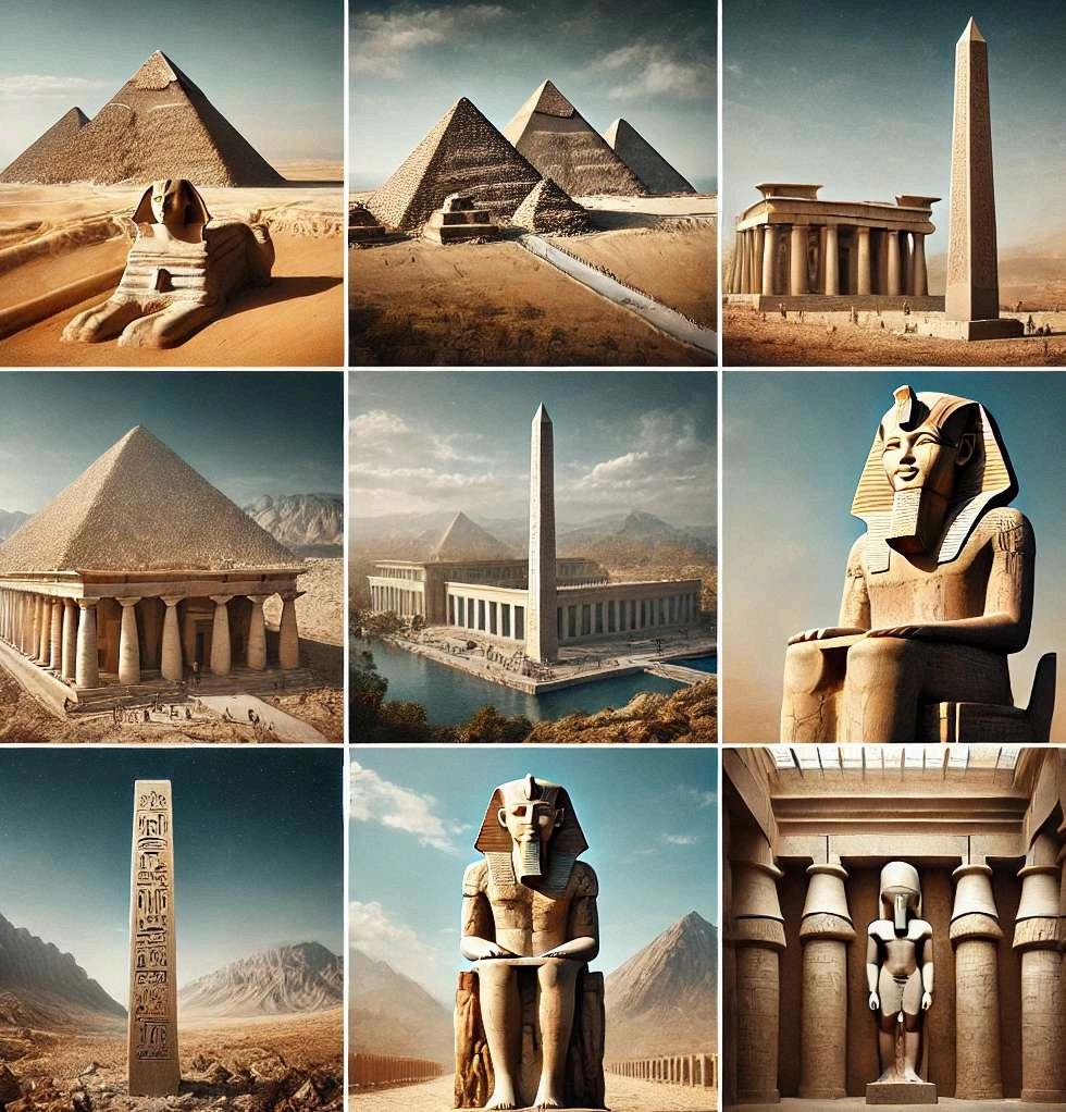 Las pirámides son quizás las construcciones más icónicas de Egipto. Originalmente diseñadas como tumbas para los faraones y miembros de la realeza, las pirámides simbolizan la transición a la vida eterna. Las más famosas son las de Giza, construidas durante el Reino Antiguo