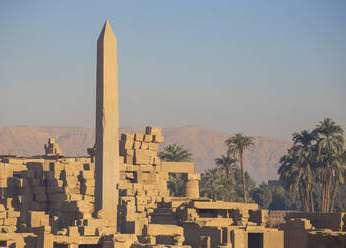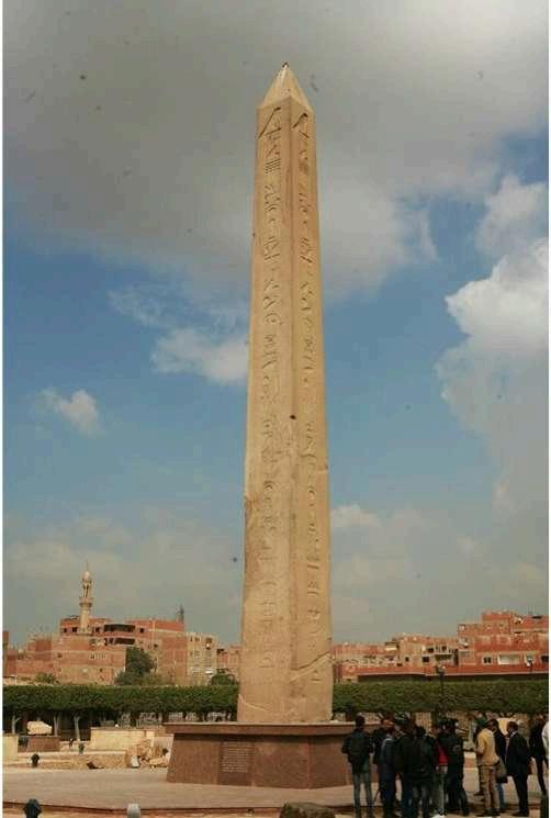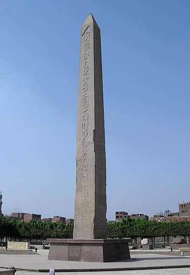 Los obeliscos se utilizaron de manera prominente en el Antiguo Egipto. Tallados en un solo bloque de piedra, generalmente se colocaban por pares a la entrada de los templos, junto a los pilonos. Durante la breve reforma religiosa de Akenatón se consideraban como rayos petrificados de Atón, el disco solar.
