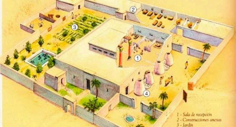 Los palacios no solo eran la residencia del faraón, sino también el centro de la administración y el poder político. Aunque han quedado pocos restos de estos edificios, se sabe que eran elaborados con materiales más livianos como ladrillos de barro, en comparación con los templos de piedra.