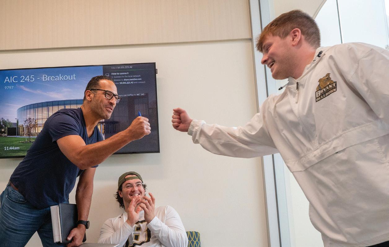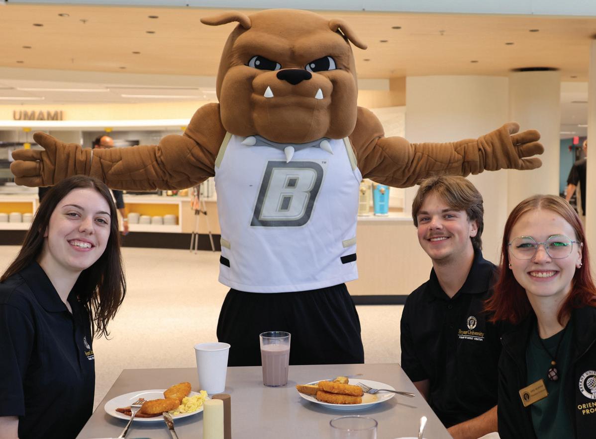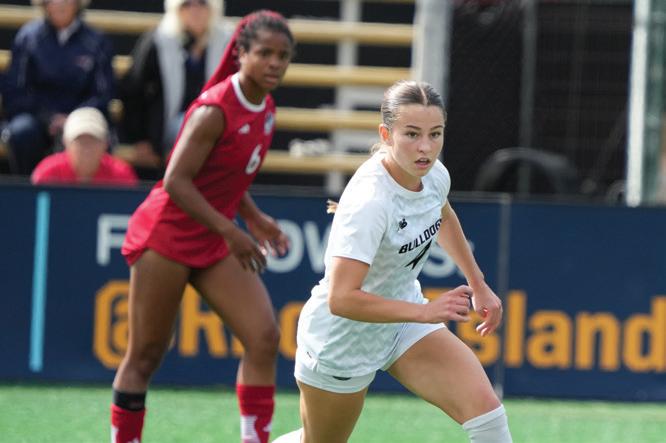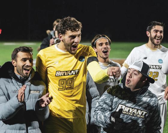 Our athletic programs continue to demonstrate the power of unity. Last fall, our men’s soccer team made history with a record-breaking season, capturing the spirit of Bulldog pride and the determination of our studentathletes (page 21). Their success, and the success of Bryant athletics more broadly, exemplifies resilience, discipline, and the strength of collective ambition and teamwork.
