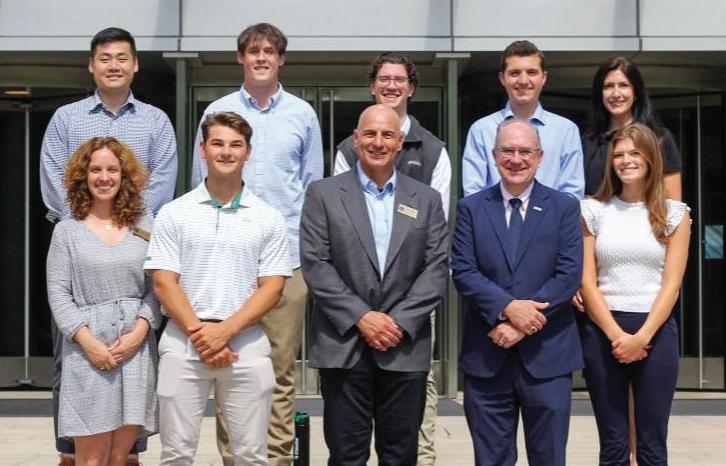 Fidelity Investments is the single largest employer of Bryant University graduates, and many of the alums who work at the $32-billion financial services company get their start there with an internship — often at Fidelity’s corporate office next door to Bryant’s Business Entrepreneurship Leadership Center, which Fidelity gifted to the university in 2023. This past summer, Fidelity interns Nick Logan ’26, Drew Mahoney ’25, ’26MBA, Grace Driscoll ’26, Tyler Jarvis ’26, and Michael DiBenedetto ’25, ’26MBA worked on projects ranging from data analysis to research — developing solutions and presenting their findings to the company’s leadership.