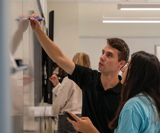 Across campus, collaboration continues to fuel progress. From foundational courses to advanced application in business, the arts, and health sciences, we are integrating artificial intelligence throughout our curriculum. Faculty, staff, and students are pushing boundaries in classrooms, labs, and centers (page 8), and our Global Advisory Council (page 45) and growing network of corporate partners are expanding opportunities for students and amplifying our impact far beyond Smithfield.