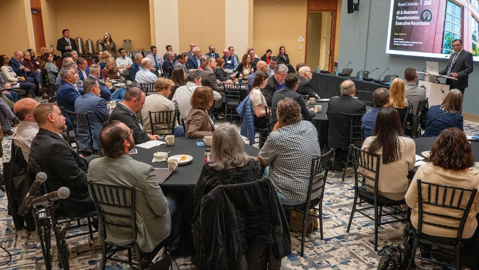 In partnership with ISG, Bryant convened leading faculty and industry experts for a dynamic conversation on artificial intelligence, from emerging workforce trends to balancing human ingenuity with AI assistance. news.bryant.edu/ai-roundtable
