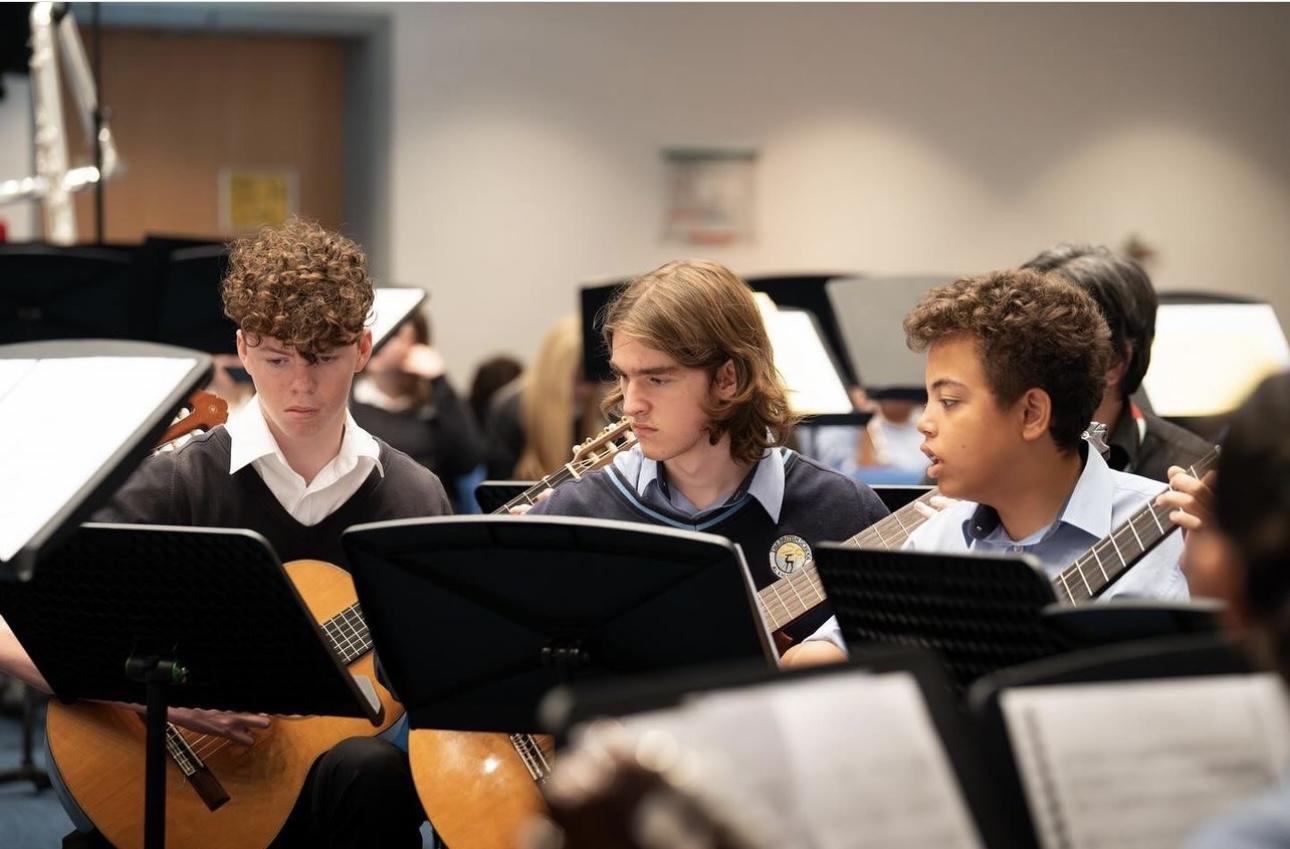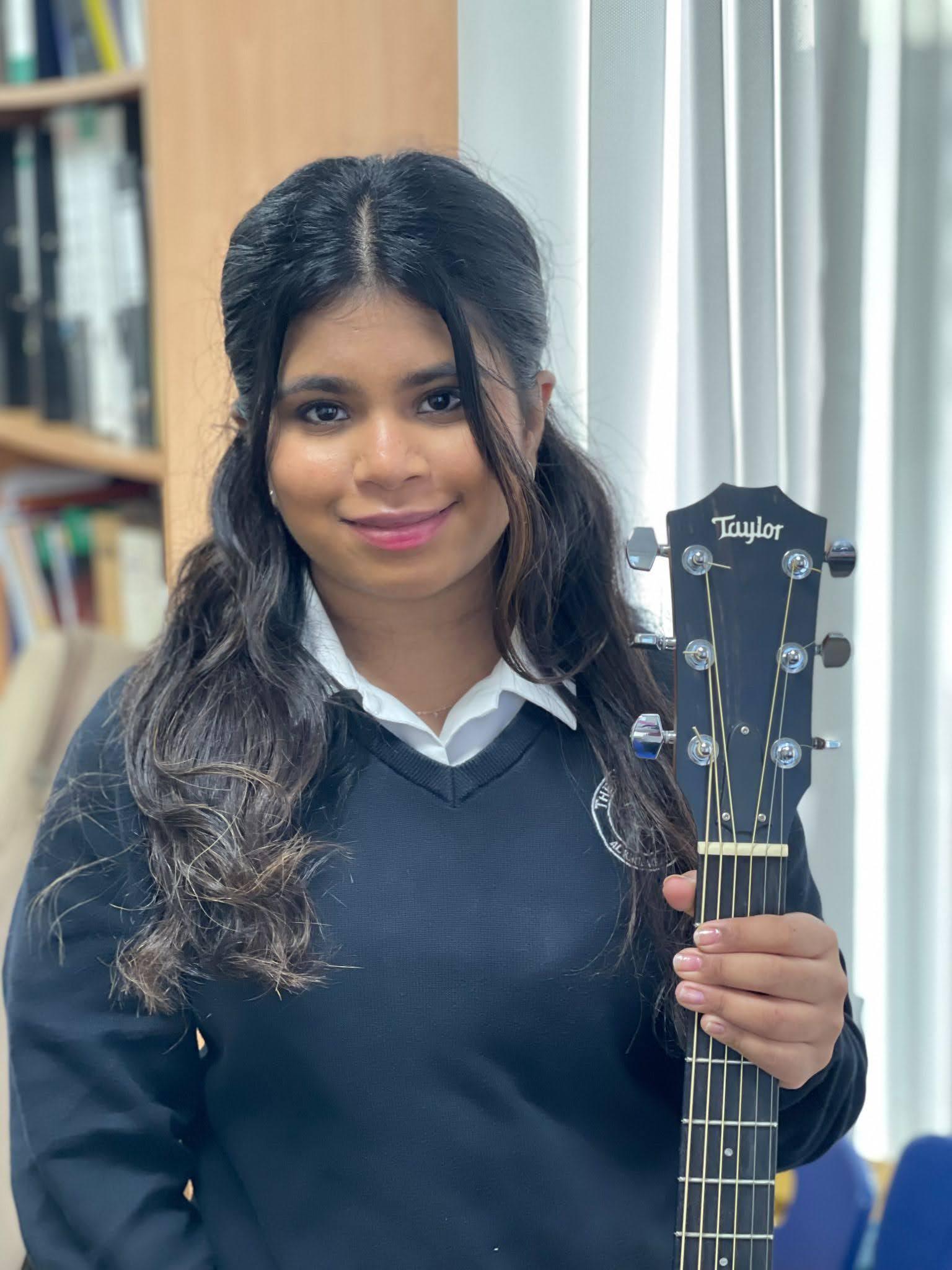 “The guitar department, teachers and students alike, are so vivacious, bubbly and incredibly enthusiastic about their involvement in this field. I’ve been in the department for over 4 years now; as I prepare to leave Sixth Form at the end of the year, one thing I will always remember is the sense of community we’ve built in the music department and how strong team of a team we are. From playing in Unplugged with Rock & Pop bands to performing at YMOG with the Advanced Guitars ensemble, I’ve been able to flourish and grow as a musician, learning more and more about my instrument on the daily.“
