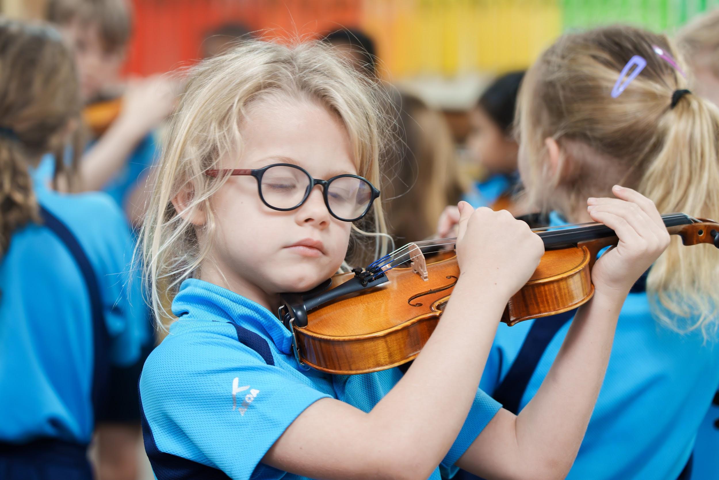 Year 2 have been learning how to play a number of different instruments. In Term 1, some of the students completed a 10 week program learning the basics in violin studies led by Ms Sonja. Other students began some rhythm work learning about crotchets and quavers. Towards the end of term, the students focussed on the Year 2 performance, which was fantastic.