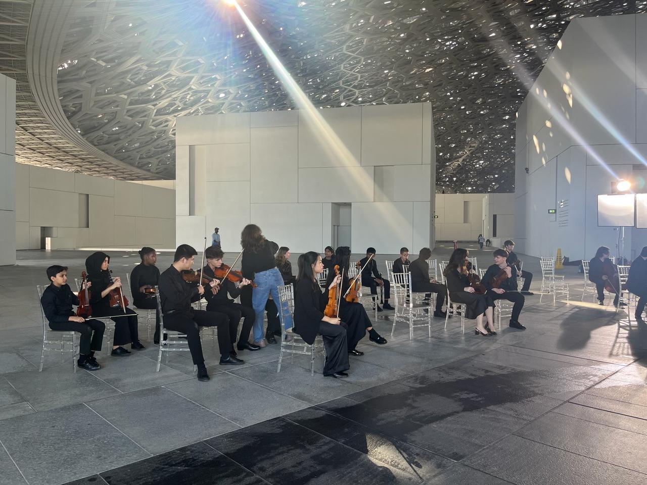 Filming at The Louvre in Abu Dhabi was a beautiful and awe-inspiring experience that served as a captivating backdrop for artistic expression. Performing the Nation’s National Anthem serves as a testament to our students skills and dedication, providing a moment for them to shine and leave a lasting impression.