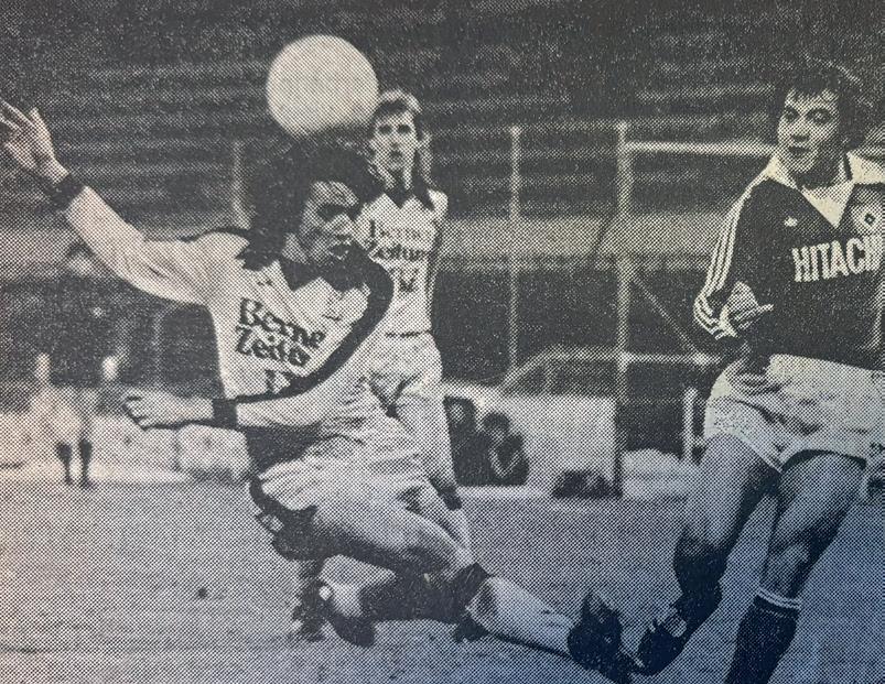 Gérard Castella im Einsatz mit YB in einem Testspiel im Jahr 1979 gegen den HSV mit Felix Magath.
