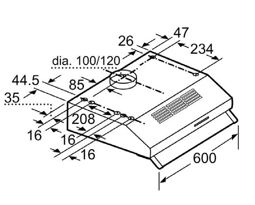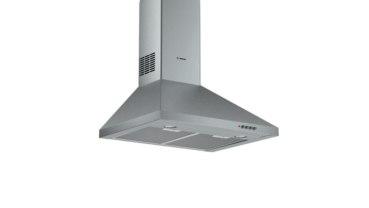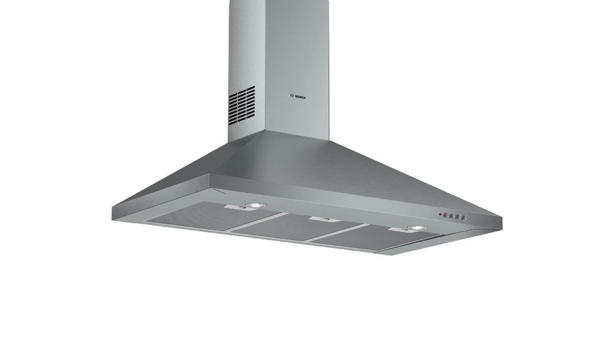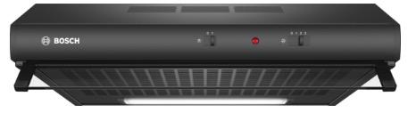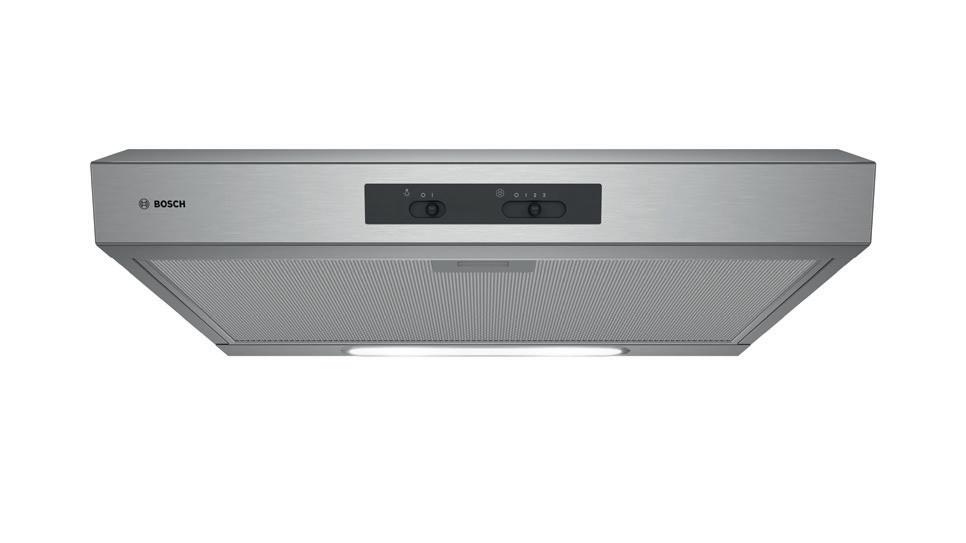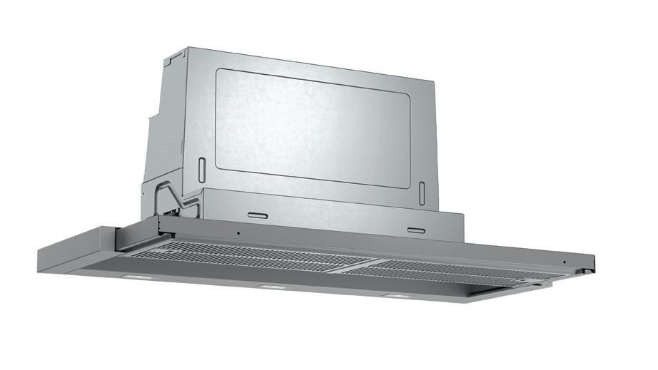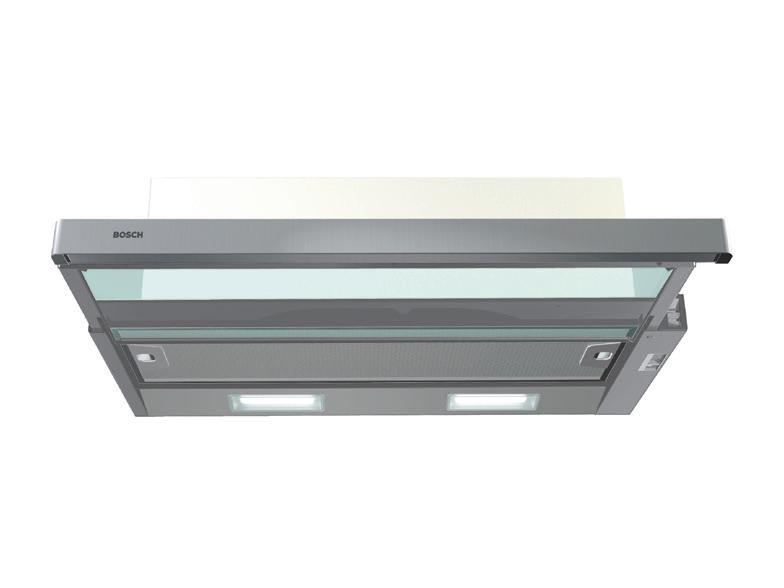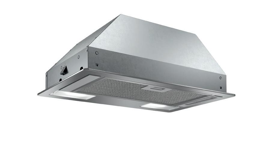 Slide switch for extractor speeds 3 Speed settings Metal grease filter, dishwasher safe
