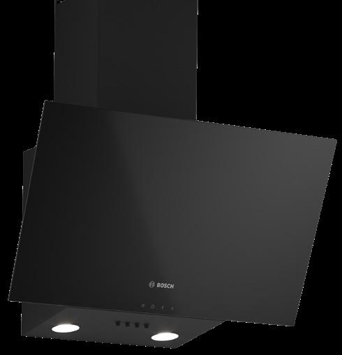 SERIES 2 60CM WALL MOUNTED EXTRACTOR, BLACK WITH GLASS CANOPY EXHAUST OR RECIRCULATION OPERATION