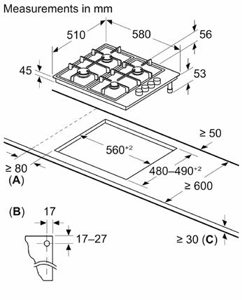 Electrical Appliances: 55.0cm (from upper edge of pan support)
