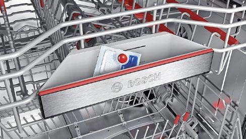 The DosageAssist ensures optimal cleaning results and a quieter wash. The detergent drops out the detergent dispenser and into a special tray on the top basket where it gets completely dissolved.