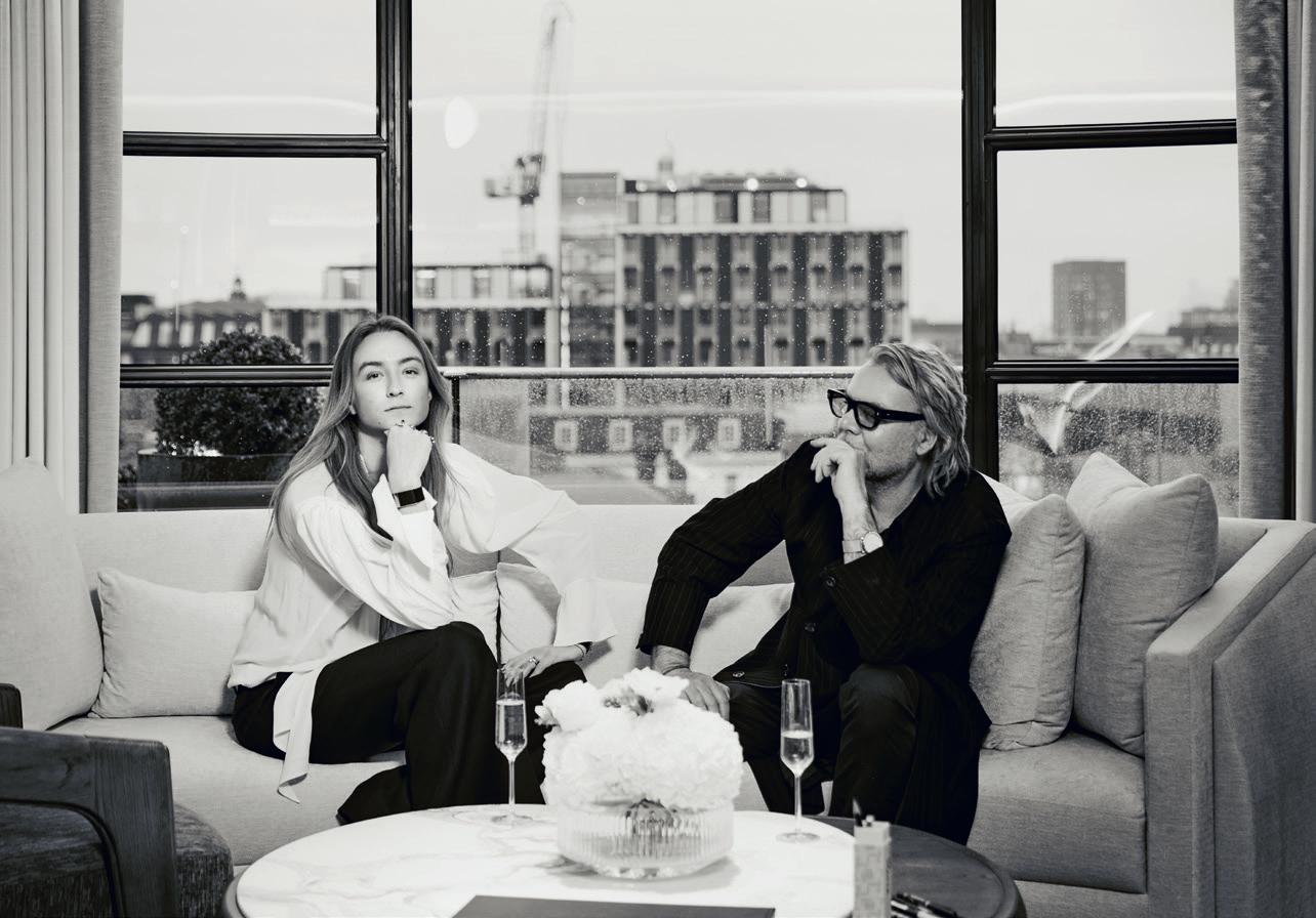 Today, Claridge’s feels like my second home, at least in my head anyway. I got married there last year. Sometimes, I arrive early for meetings and wander around a bit – I love seeing room service trays outside rooms and wondering about the lives of the people inside. Are they a prince? An actor? It’s like a time capsule. Today, everything is so instant; sitting for a portrait is like something from another era. I feel like an 18th-century prince. It’s like making a couture gown. You can’t rush it. In my work, I get to sign o every detail, every decision, so to hand over the gauntlet to someone else feels crazy. I have to trust him entirely. As the afternoon goes on, we chat fluidly about fashion, travel and art. It is such a delicious and cultured conversation.