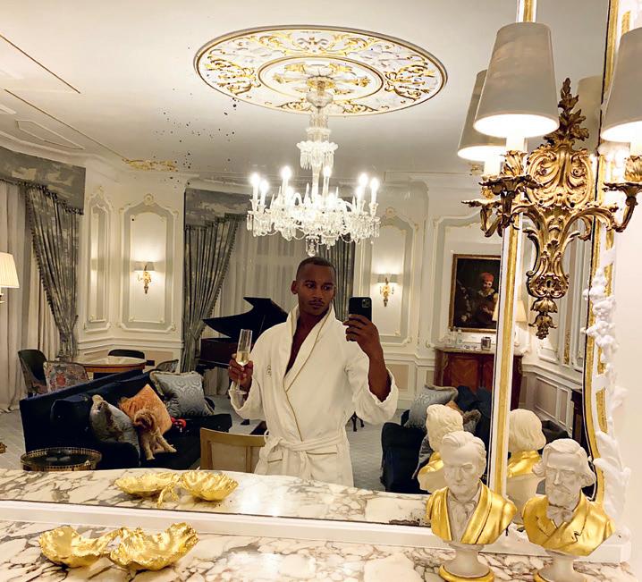 is a photographer who has worked with Cartier, Diesel and Gray M.C.A. He documents David Downton’s portrait of Harris Reed. He loves the ‘trophy husbands’ of Michael Taylor, swimming in Hampstead Heath ponds and creating beautiful things that bring him joy. His room service order is a breakfast of buttermilk pancakes.